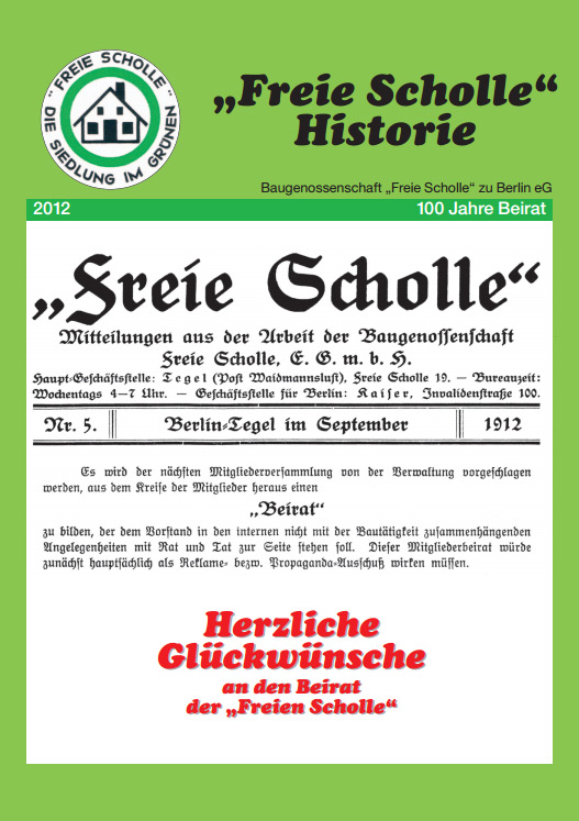 Zum 100-jährigen Jubiläum des Beirats im Jahr 2012 hat die Baugenossenschaft "Freie Scholle" ein Sondermitteilungsblatt veröffentlicht. Den Artikel des Baugenossen Heinz Liepold können Sie nachfolgend als PDF-Datei herunterladen.