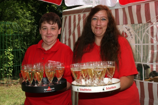 Karin Schmidt und Verena Noebel vom Beirat der "Freien Scholle" sorgten dafür, dass die Schollaner bei sonnigem Wetter mit ausreichend Getränken versorgt wurden.