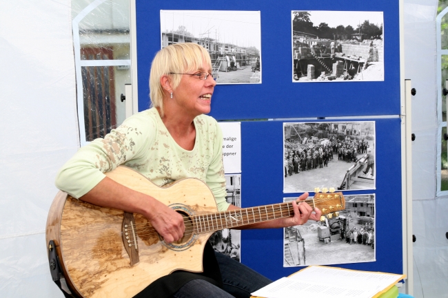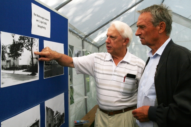 Der Vorstand hatte Informationtafeln mit historischen Bildern vom Richtfest, der Bauphase und der Fertigstellung der Wohnungen der Siedlung Lübars vor 50 Jahren aufgestellt.