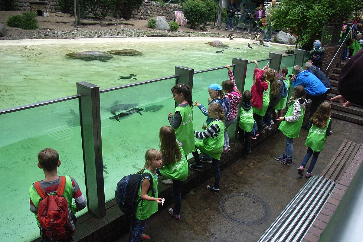 Nachdem alle sich gestärkt hatten machten wir uns auf den Weg zu den Tigerbabys Alisha und Dragan. Diese tobten ausgelassen in ihrem Käfig. Weiter ging es, natürlich, zum nächsten Spielplatz. Von dort dann zum Freigehege, da gab es Zebras, Springböcke und Kängurus zu bestaunen. Jetzt wurde es aber Zeit, um zu den Pinguinen zu gehen.