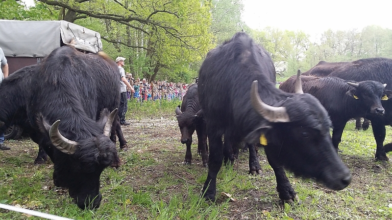 Am 05.05.2015 wurden die Tiere pünktlich um 12 Uhr aus den Transportern in ihre neue Heimat entlassen. Über 500 Zuschauern nahmen an diesem besonderen Spektakel teil. Schüler der Münchhausen-Grundschule, Kinder der AWO-Kita „Freie Scholle“ und sehr viele Schollaner waren der Einladung gefolgt.