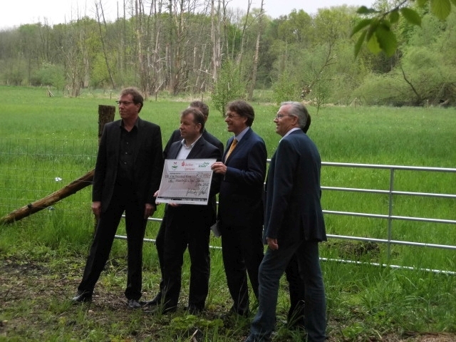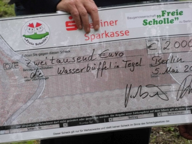 Zur finanziellen Unterstützung überreichten die Vorstandsmitglieder der „Freien Scholle“ den Vertretern des Bezirksamtes Reinickendorf einen Scheck in Höhe von 2.000,-- EUR.