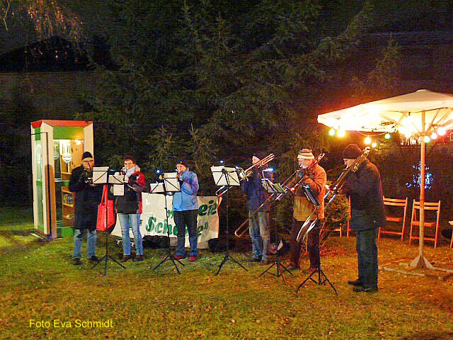 Dafür Dank an die vielen Hände, die bei der Herrichtung der Beleuchtung, Aufstellung der Tische und Stühle sowie bei der Zubereitung des Glühweins und dessen Verteilung geholfen haben. Das waren mehrere Stunden Arbeit.