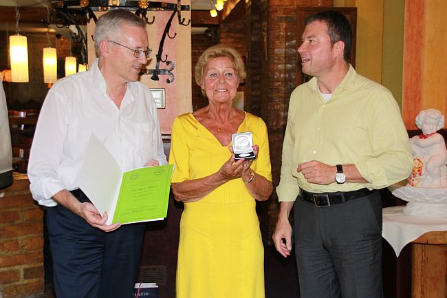 Frau Behrendt wurde im Rahmen einer kleinen Feierstunde verabschiedet. Als Dank und Anerkennung erhielt sie die silberne Ehrenmedaille der "Freien Scholle".