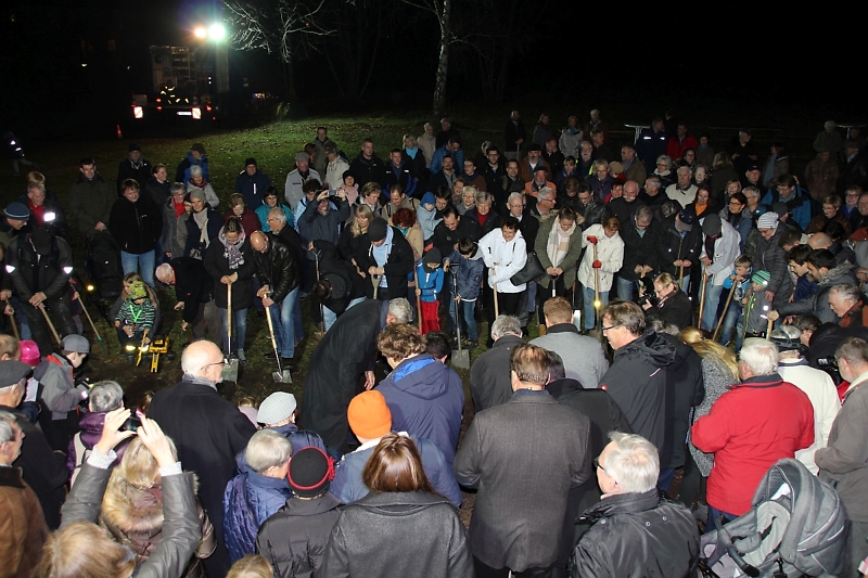 Nachdem die drei Herren ihre Reden zur Geschichte des Grundstücks sowie zur weiteren Planung des Bauvorhabens gehalten hatten, konnte die "Buddelei" schließlich beginnen.