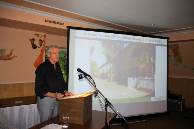 Jürgen Hochschild stellte die größeren Instandhaltungsmaßnahmen 2013 im Einzelnen nochmals vor und gab einen Ausblick auf die Instandhaltungsmaßnahmen im laufenden Geschäftsjahr und auch schon für 2015. Mit beeindruckendem Bildmaterial wurde die Notwendigkeit der einzelnen Maßnahmen und das Ergebnis der Arbeiten aufgezeigt.