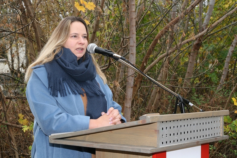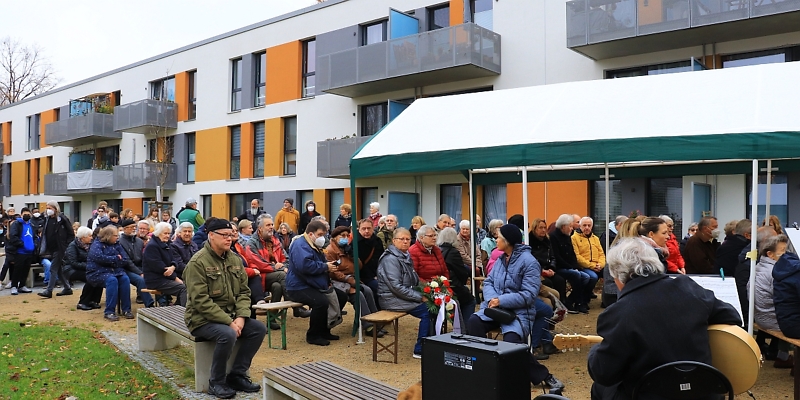 Das Vorstandsmitglied der Baugenossenschaft "Freie Scholle" Lidija Arndt eröffnete die Veranstaltung und begrüßte neben den Schollanern auch Schüler der Münchhausen-Grundschule, die anlässlich des historischen Datums erneut einen Projekttag organisiert hatten.