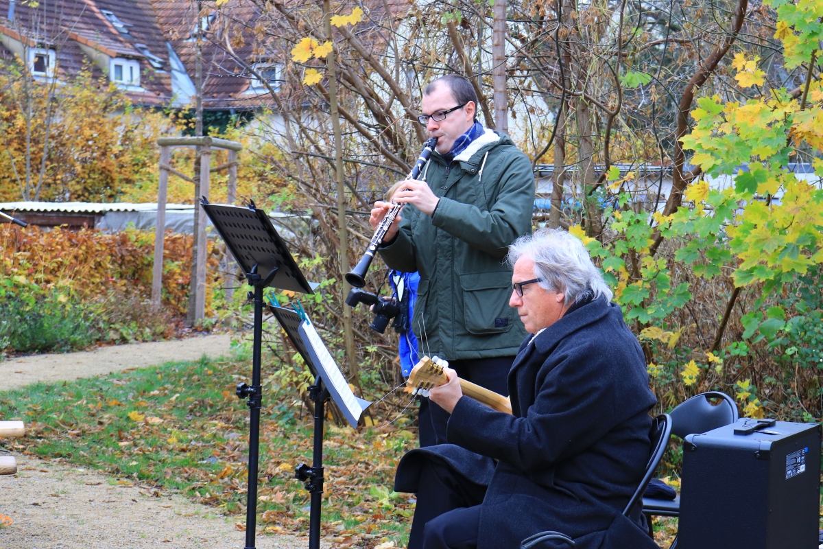 Musikalisch begleitet wurde die Veranstaltung von den beiden Mitgliedern der Evangelischen Kirchengemeinde Tegel-Borsigwalde Benjamin Lignow auf der Klarinette und Detlev Steinert mit der Gitarre. Die ausgewählten Stücke der beiden Musiker verliehen der Veranstaltung eine angenehme Stimmung.