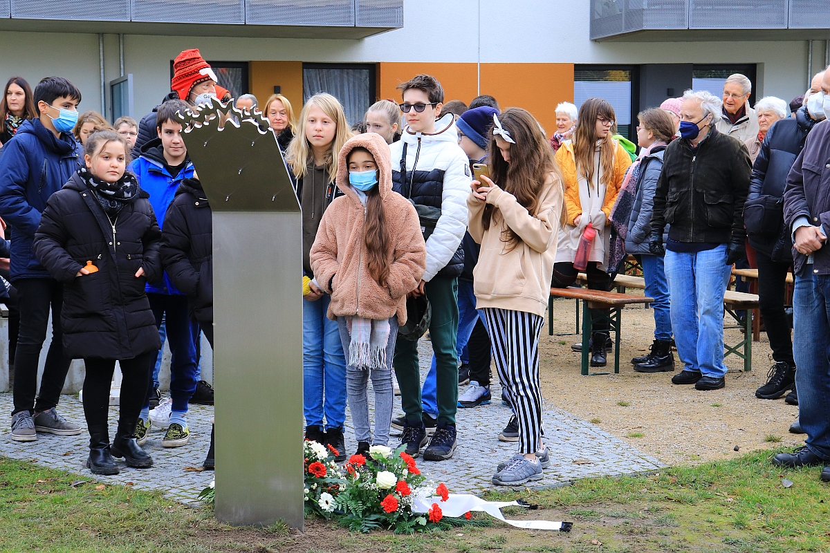 Sichtlich bewegt standen auch die vielen Grundschüler vor der enthüllten Tafel. Damit erreicht die Gedenkstehle die beabsichtigte Wirkung, niemals die Opfer sowie die Geschehnisse der nationalsozialistischen Gewaltherrschaft zu vergessen.