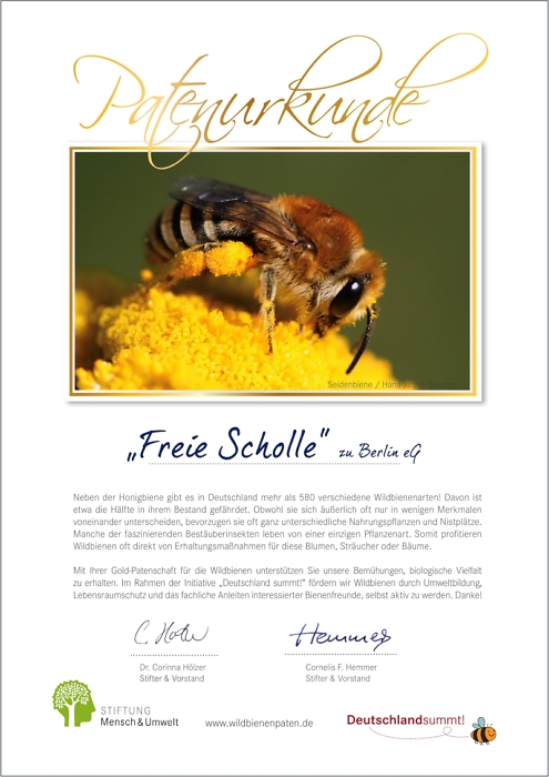 Eines von drei Projekten in Berlin ist die teilweise Umgestaltung der Gartenanlage in unserer Siedlung Lübars. Vor Ort wird das Projekt von der Stiftung Mensch & Umwelt umgesetzt. Von den für unsere Siedlung entstehenden Gesamtkosten von über 200.000 € tragen wir einen Anteil von 56.700 €. Die Gesamtkosten beinhalten auch Pflegekosten für die Jahre 2019 bis 2021. Da es sich bei dem Projekt auch um ein Forschungsprojekt handelt, wurde die hintere Grünfläche so belassen wie sie war. Durch den Vergleich vorher/hinterher soll der Erfolg des Projekts gemessen werden.