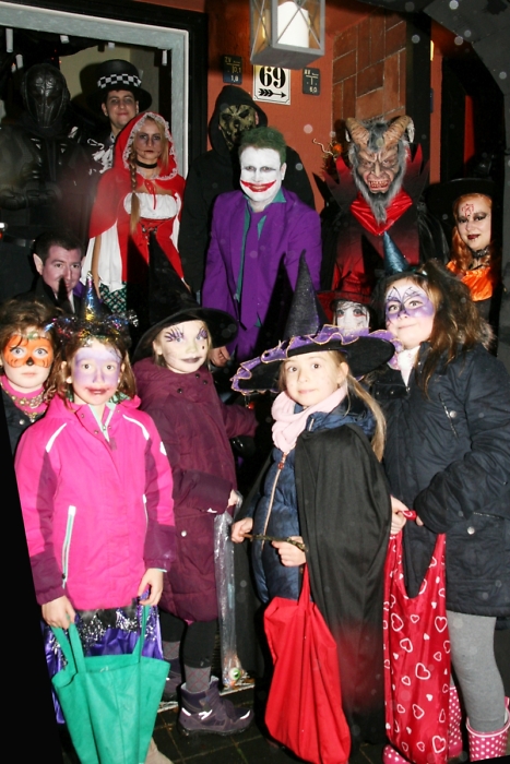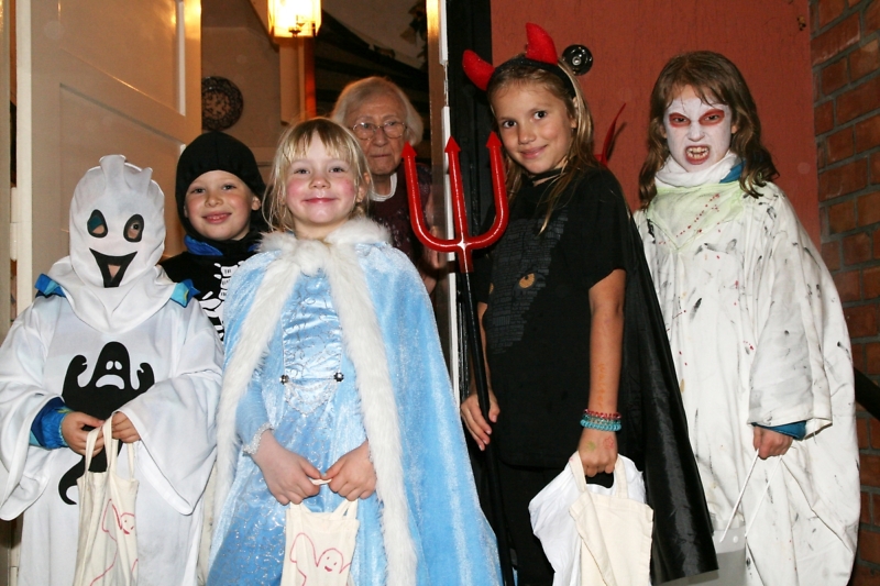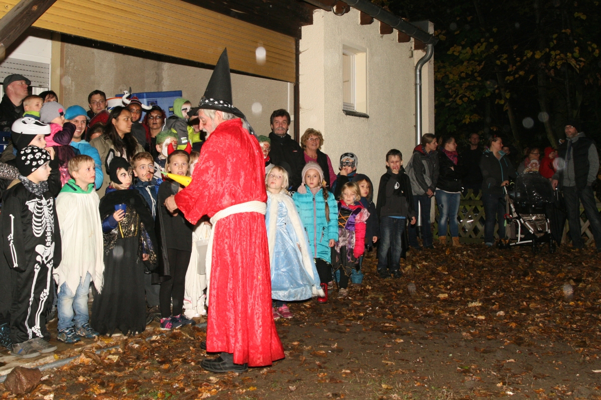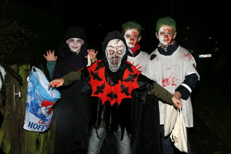 Mit Unterstützung der älteren Geister schwärmten sie in 6 Gruppen aus, um in der "Scholle" ihr Unwesen zu treiben. Eifrig flogen und liefen sie von Tür zu Tür und baten um Süßigkeiten.
