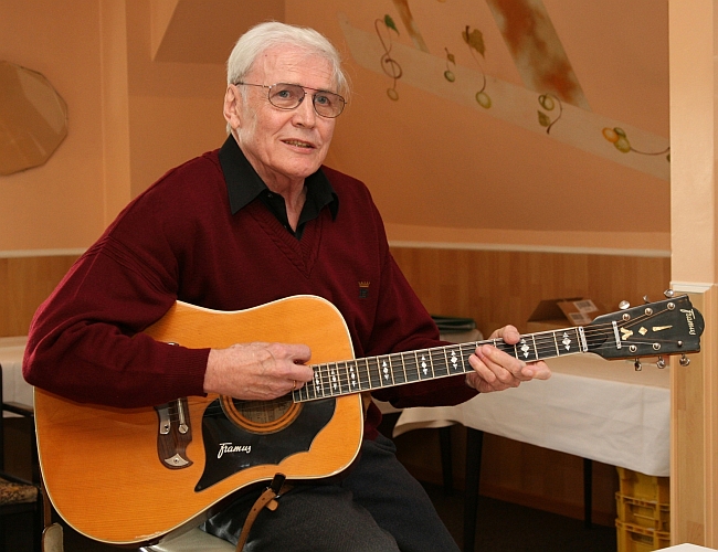 Den absoluten Höhepunkt bildete in diesem Jahr eine besondere musikalische Einlage. Der Baugenosse Volker Behnke – selbst Jubilar – hatte seine Gitarre mitgebracht und einige selbstgetextete Lieder vorgetragen. In den sehr liebevoll zusammengestellten Textzeilen erzählte er über das besondere Wohnen in der „Freien Scholle“. Alle Gäste waren begeistert. Als der Beifall nicht enden wollte, ergänzte er seinen musikalischen Vortrag mit einigen Songs von Elvis Presley und Johnny Cash. Nochmals herzlichen Dank an Volker Behnke.