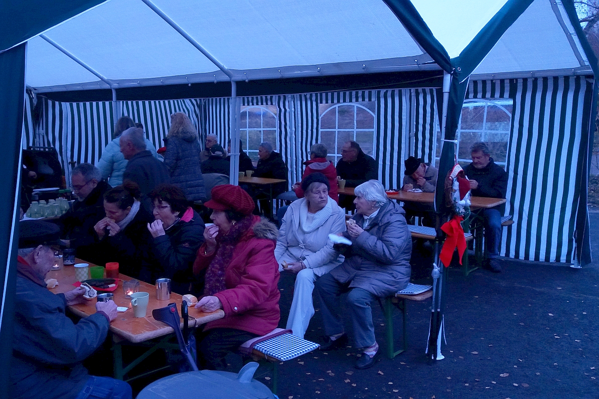 Am Ende eines gemütlichen Nachmittages war der gesamte Glühwein und Glühpunsch geleert, alle Bratwürste verzehrt und es haben viele nette Gespräche über das Leben in unserer Siedlung stattgefunden. Am Rande des Zeltes, das am Vormittag von vielen Helferinnen und Helfern aufgebaut worden war, knisterte das brennende Holz in einer Feuerschale und allen war klar, dass wir uns an diesem Platz im Sommer zum Schollenfest und am 5. Dezember 2020 wiedersehen werden.
