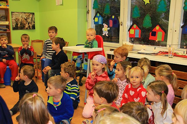 Nach dem Frühstück versammelten sich alle Kinder und stimmten zwei Weihnachtslieder an,
