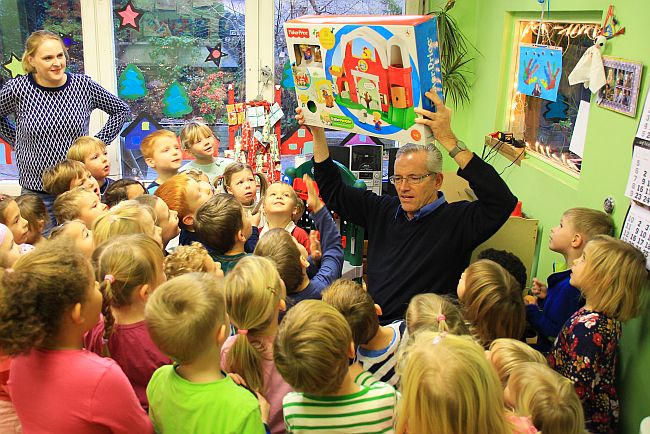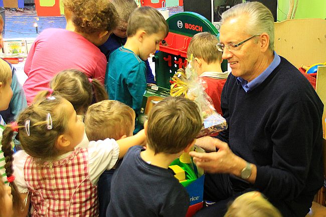 Im Rahmen eines Frühstücks am Nikolaus-Tag hat Jürgen Hochschild, Vorstandsmitglied der Baugenossenschaft "Freie Scholle", traditionell Weihnachtsgeschenke für die Kinder unseres Kooperationspartners der AWO-Kita "Freie Scholle" überbracht.