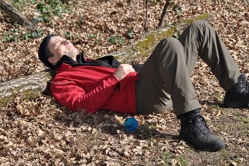 Wie man auf dem Foto sehen kann, brauchten auch die Eierwächter mal eine wohlverdiente Pause. Einmal um den See herum, am Spielplatz vorbei, dort war auch ein Sammelpunkt, ging es weiter in Richtung Rodelbahn.