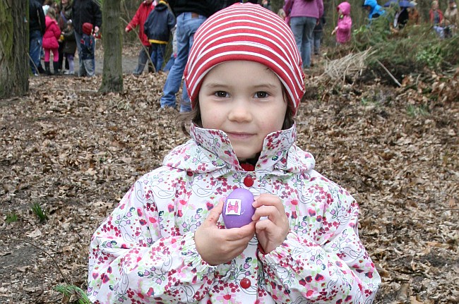 Alle folgten dem Osterhasen, der den Kindern beim Suchen half. An sechs Stellen im Steinbergpark empfingen die "Eierwächter" des Beirats die lustige und trotz des feuchten Wetters stets gut gelaunte Truppe. Hier schwärmten die Kleinen und Großen aus, um alle versteckten Eier zu finden.