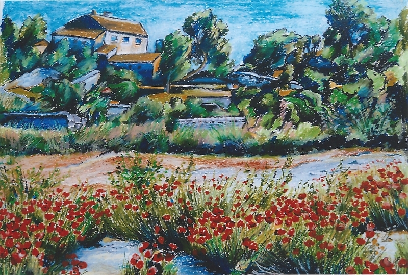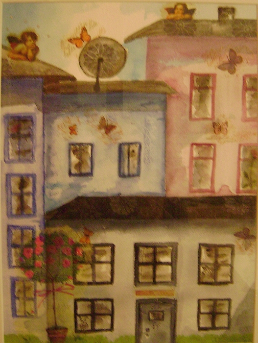 Gisela Grundmann verwendet häufig Aquarellfarben in Verbindung mit der Serviettentechnik,