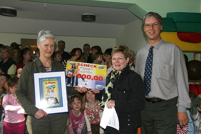 Die Kinder der AWO-Kita "Freie Scholle" sind großartige Altpapier-Sammler. Hierfür erhielten Sie heute vom Betriebsleiter der Firma "Kühl Entsorgung", Sven Arend, und der Projektleitering, Gudrun Goerlich, einen Scheck über 500 Euro.