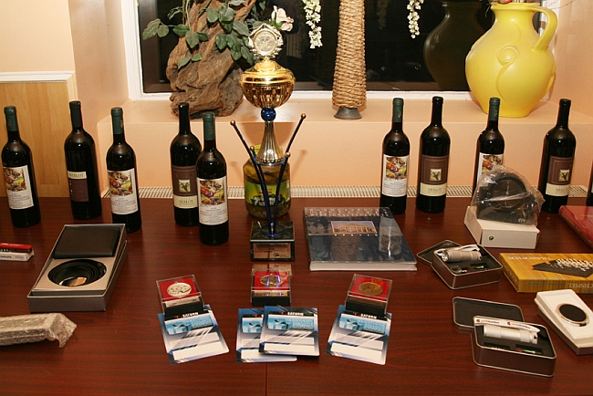Platz 3 und somit die Bronzemedaille und ein 50,- EUR Gutschein gingen mit 2000 Punkten an Karl-Adolf Rademacher. Die Gutscheine im Gesamtwert von 500,- EUR wurden von der Firma Hans Schnieber Gala-Bau gespendet. Ein Blick auf den Präsente-Tisch verrät, warum sich das Skat-Turnier der "Freien Scholle" so großer Beliebtheit erfreut. Es bekommt nämlich fast jeder Teilnehmer einen Preis.