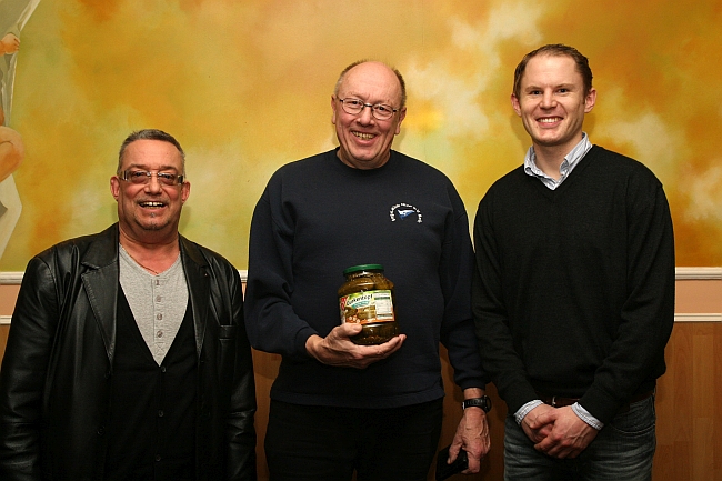 Auch der Baugenosse Holger Jaumann (mitte) ging nicht leer aus. Er konnte sich mit 378 erspielten Punkten über das Gurkenglas freuen.