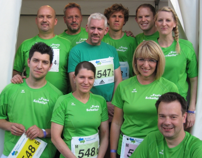 Leonard Eichhorn vom Team II war als erster vom Teamzelt aus zu erblicken. Mit hohem Tempo zog er vorbei. Nur wenige Minuten später folgte Harald Nehls. Eine gute Grundlage war gesichert und auch die Stabübergabe erfolgte bei beiden Staffeln reibungslos. Weiter ging es an die zweiten Läufer, Angelika Bilsheim und Olaf Herbst, die fünf Kilometer in ebenso guten Zeiten zu schaffen. Der Vorsprung, den Leonard Eichhorn vorgelegt hatte, wurde von Olaf Herbst jedoch in kurzer Zeit atomisiert. Doch auch Angelika Bilsheim bewältigte die Strecke in gewohnter Leichtigkeit und schenkte ihren Teams nach ca. 4,5 Kilometern ein glückliches Lächeln. Jetzt begaben sich Silke Oppermann und Oliver Schlorke in die Wechselzone und warteten angespannt auf den Staffelstab. Mit der Sonne im Rücken bezwangen auch sie die Strecke ohne Probleme. Als 4. Läufer gelang es auch Uwe Hille trotz verbissenen Kampfes nicht den Vorsprung der Staffel I aufzuholen. Franziska Bruhn wusste als erfahrene Läuferin sich seiner Attacken mit Leichtigkeit zu erwehren und konnte den Vorsprung locker verteidigen. Für Fabian Behrendt sollte es als Schlussläufer des Teams II ohnehin schwer werden gegen den „Laufprofi“ der „Freien Scholle“ Christian Griebenow noch etwas gut machen zu können. Inzwischen war es schon 20:30 Uhr und sehr dunkel geworden. Christian Griebenow legte als letzter Läufer einen langgezogenen Endspurt hin und brachte Staffel I nach 2:16:34 Stunden auf den 801. Platz. Im Vorjahr war das Team trotz einer um eine Minute besseren Zeit noch 827. geworden. Fabian Behrendt wurde knapp 12 Minuten später enthusiastisch vom gesamten "Freie Scholle"-Team an der Ziellinie empfangen. Staffel II schaffte es mit 2:28:39 Stunden auf den 1277. Platz und war damit eine Minute schneller und 100 Plätze besser als im Vorjahr.
