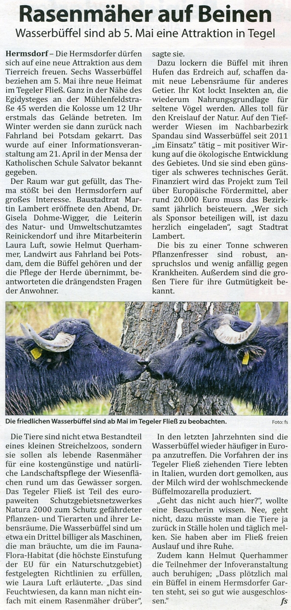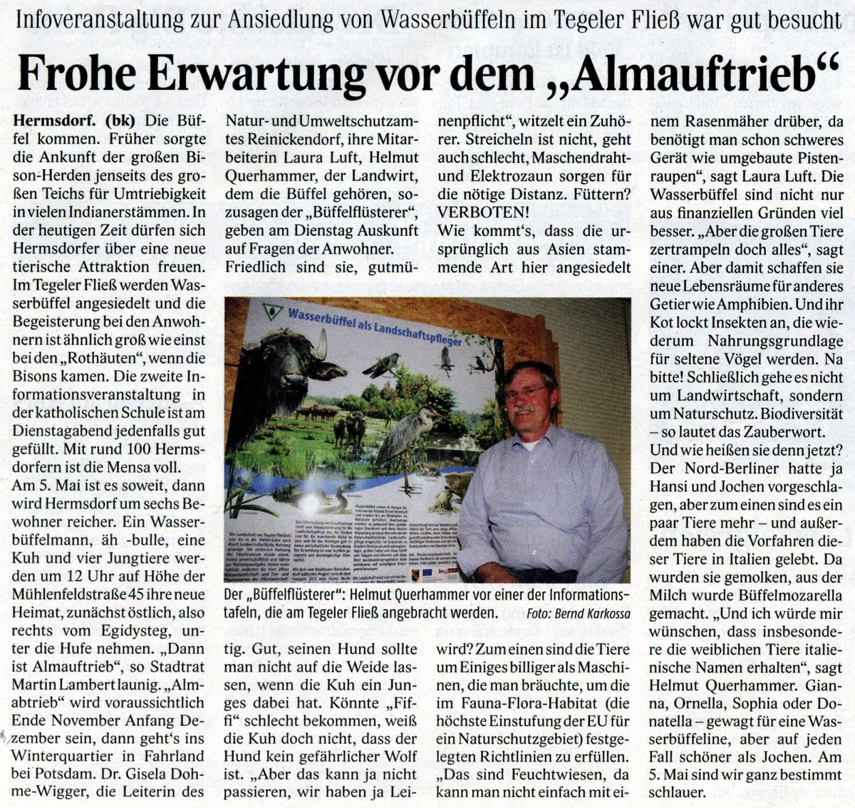 25.04.2015 - Ansiedlung der Wasserbüffel rückt näher