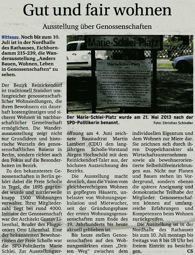 Artikel aus der Zeitung "Berliner Woche" vom 24.06.2015: