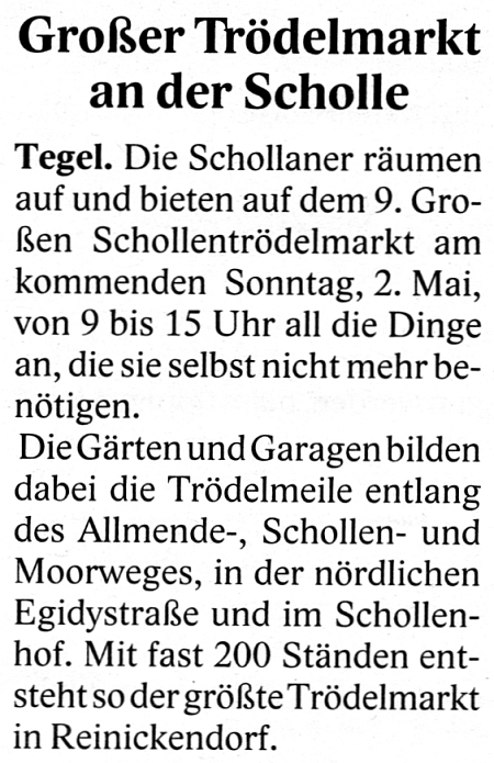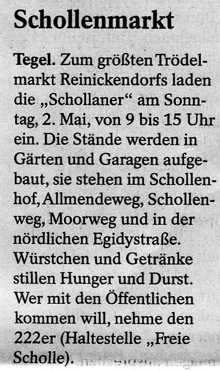 Artikel aus den Zeitungen "Berliner Abendblatt" vom 01.05.2010, "Nord-Berliner" vom 29.04.2010 und "BZ" vom 20.04.2010