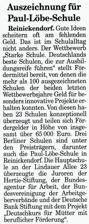 Artikel aus der Zeitung "Nord-Berliner" vom 04.12.2008