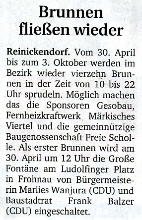 23.04.2008 - "Freie Scholle" sponsert wieder Brunnen in Reinickendorf