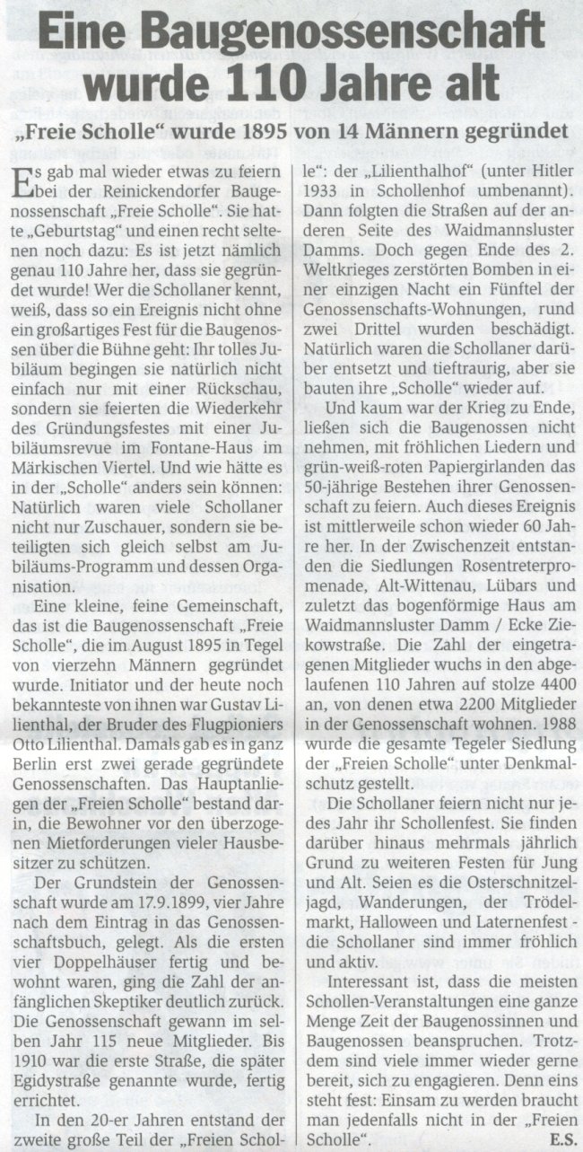 18.01.2006 - "Freie Scholle" wird 110 Jahre alt