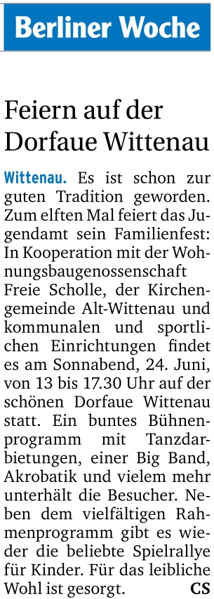 Artikel aus der Zeitung "Berliner Woche" vom 21.06.2017: