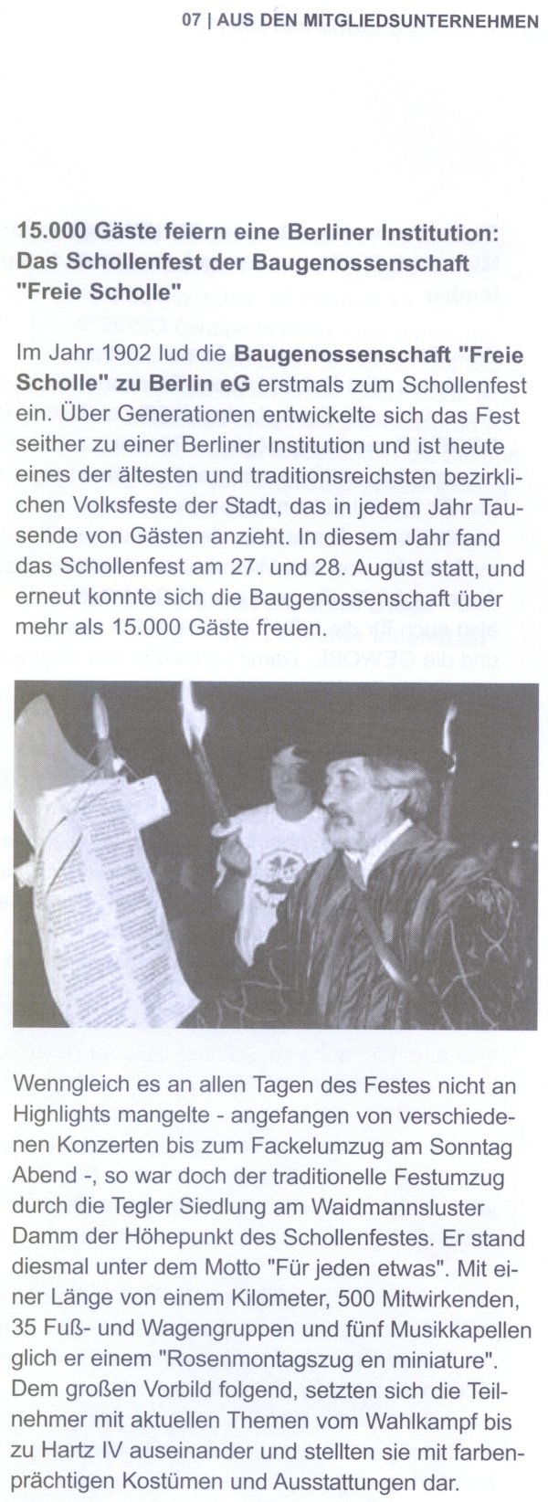 Artikel aus den Zeitungen "Wohnen in Berlin/Brandenburg" Nr. 11/12 2005 und 9/10 2005, "Nord-Berliner" vom 01.09.2005 und "BBU-Nachrichten" 16/2005.