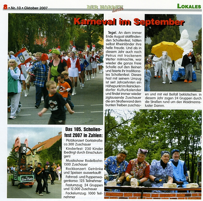 Artikel aus den Zeitungen "Nord-Berliner" vom 06.09.2007, "Berliner Woche" vom 05.09.2007 und "Der Norden heute" Ausgabe Oktober 2007