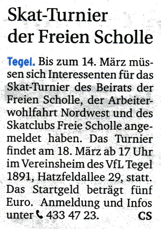 24.02.2016 - Freie Plätze beim Skat-Turnier