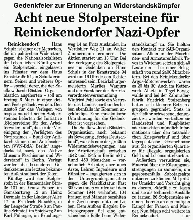 Artikel aus der Zeitung "Nord-Berliner" vom 05.03.2009: