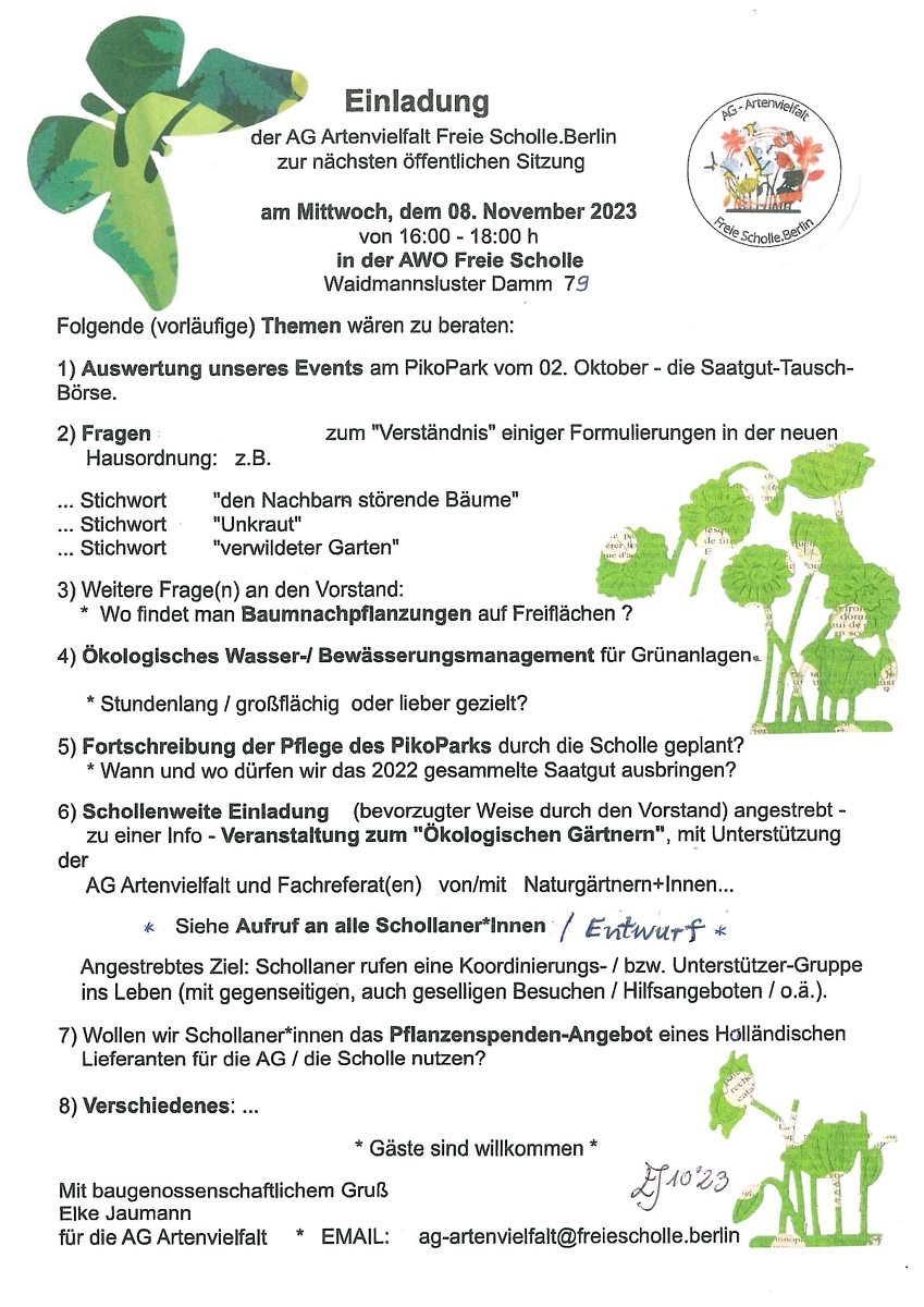 08.11.2023 - Einladung zur öffentlichen Sitzung der AG Artenvielfalt