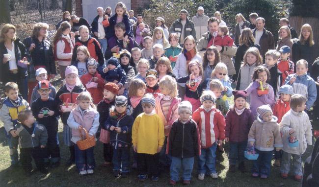 Die "echten" Schoko-Eier werden erst bei der Rückkehr an der Jugendfreizeitstätte verteilt. Da das Sammeln in Teams vorgeht, ist Konkurrenzdenken überflüssig, so dass die die großen fixen Kinder den kleinen bedächtigen nicht all die Schätze vor der Nase wegschnappen.