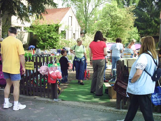 Das besondere Merkmal dieses Flohmarktes ist, dass die Kontakte mit den Nachbarn mindestens eine eben so wichtige Rolle spielen wie das Handeln, Kaufen und Verkaufen. Darum waren im vergangenen Jahr die Stände, an denen Beiratsmitglieder - unterstützt von weiteren freundlichen Helfern - frisch gebrutzelte Rostbratwürste sowie Kaffee und kalte Erfrischungsgetränke zu äußerst bescheidenen Preisen feilboten, ein gefragter Treffpunkt. Diese "Verpflegungspunkte" befinden sich im Schollenhof und am Rundteil der Egidystraße.