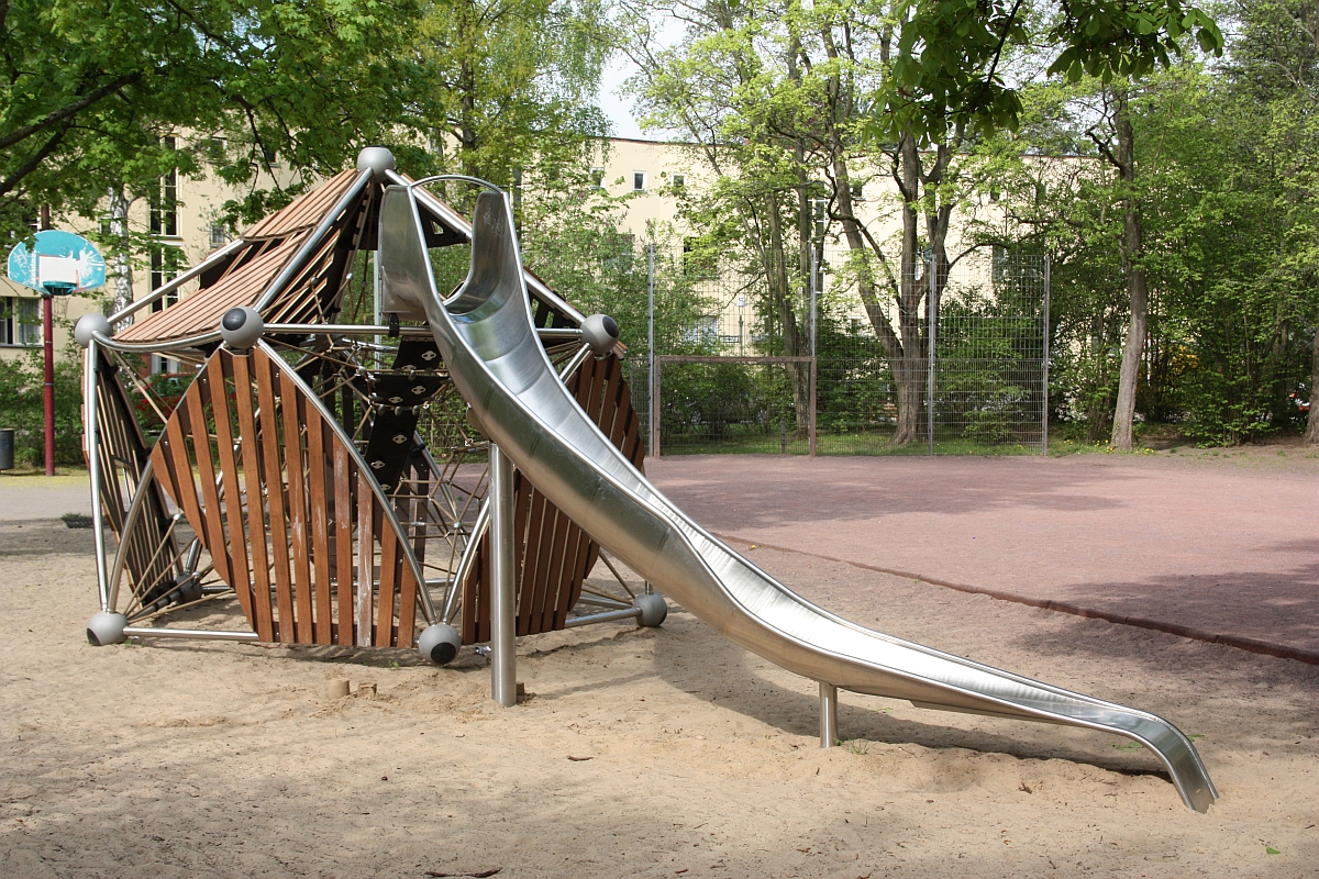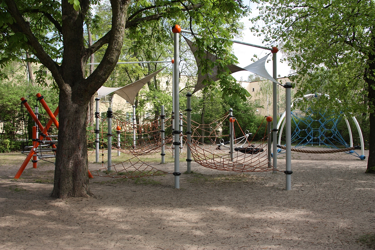 Hier haben die Kinder die Möglichkeit zum Schaukeln, Klettern und Rutschen, aber auch zum Tischtennis-, Streetball- und Fußballspielen.