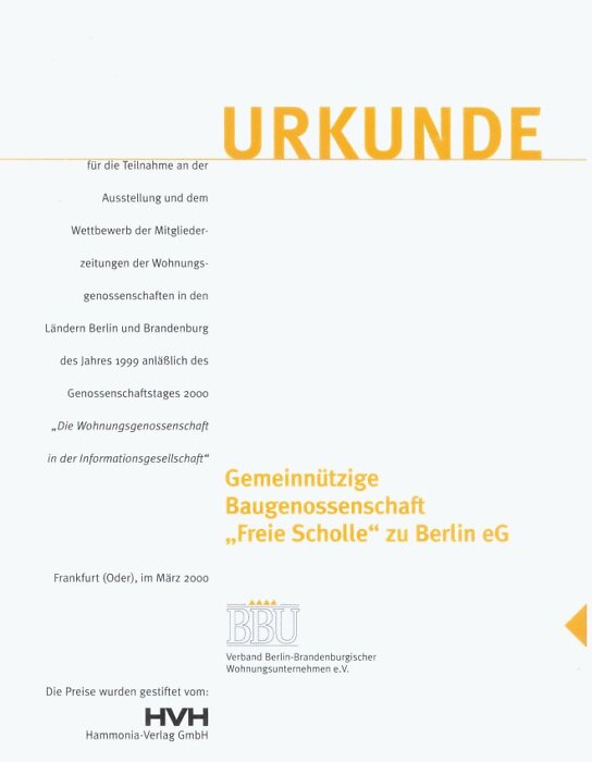 Urkunde für unser Mitteilungsblatt für die Teilnahme an einer Ausstellung
