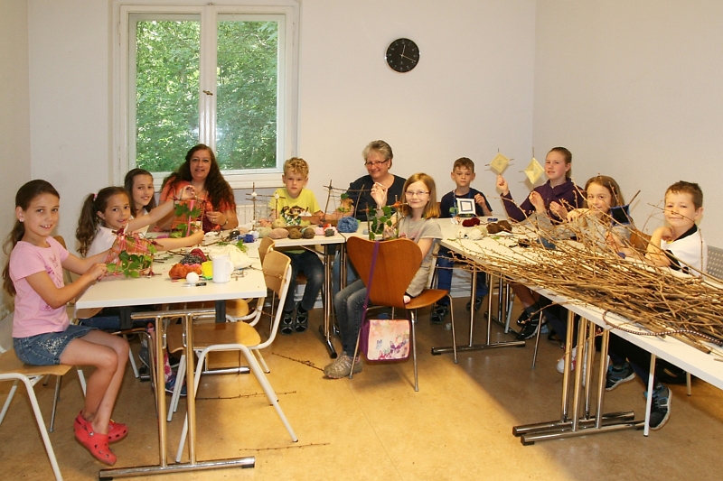 Währenddessen bastelte die andere Gruppe in der oberen Etage gemeinsam mit Jutta Schebsdat und Verena Noebel 'Magische Augen'. "Jutta und Verena haben uns erst einmal erklärt, was wir basteln können", erzählte Christin. Dann stellten die kleinen Schollaner Naturbilder aus Zweigen von Haselnusssträuchern und Wolle oder Naturbilder im Wechselrahmen her. Natürlich haben die Betreuerinnen den Kindern beim Aussuchen geholfen und die Materialien erklärt.